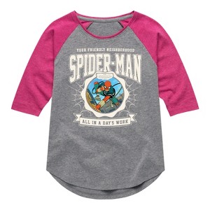 Girls' - Marvel - Friendly Spidey Collegiate Shirt Tail Raglan Graphic T-shirt - 1 of 3