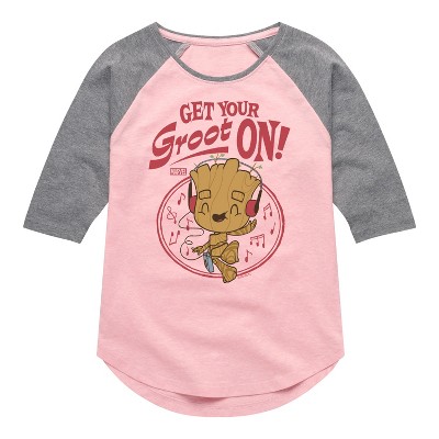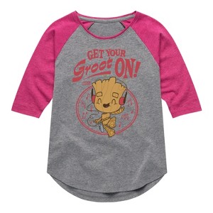 Girls' - Marvel - Guardians of the Galaxy Get Your Groot On Shirt Tail Raglan Graphic T-shirt
