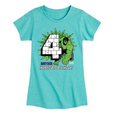 Marvel Hulk - Incredible Birthday 3 - Toddler And Youth Girls Fitted Short Sleeve Graphic T-Shirt - Introducing our collection of officially licensed Marvel graphic apparel, where legendary superheroes and iconic moments from the Marvel Universe come to life on high-quality, comfortable clothing. Each design is carefully crafted with vibrant, detailed artwork featuring beloved characters like Spider-Man, Iron Man, Captain America, and the Avengers. From bold graphic tees to stylish hoodies and accessories, our apparel celebrates the thrilling world of Marvel with cutting-edge prints, premium fabrics, and a perfect fit for fans of all ages.