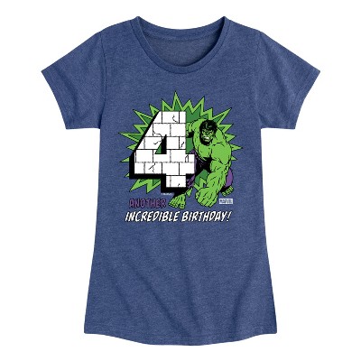 Girls' - Marvel - Hulk Incredible Birthday 5 Fitted Short Sleeve Graphic T-Shirt