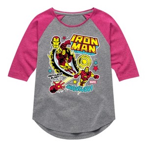 Girls' - Marvel - Iron Man Sticker Style Shirt Tail Raglan Graphic T-shirt - 1 of 3
