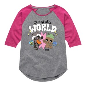 Girls' - Marvel - Guardians of the Galaxy Out Of This World Shirt Tail Raglan Graphic T-shirt - 1 of 4