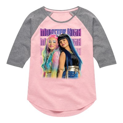 Girls' - Mattel - Cleo De Nile & Clawdeen Are Creeperific Shirt Tail Raglan Graphic T-shirt
