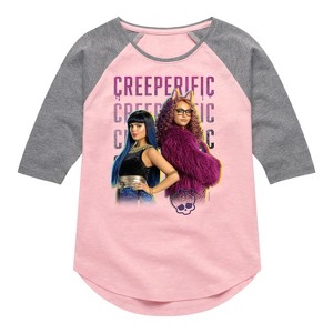 Girls' - Mattel - Cleo De Nile & Clawdeen Are Creeperific Shirt Tail Raglan Graphic T-shirt - 1 of 4
