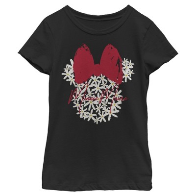 - Add a touch of holiday magic to your wardrobe with this stylish new girls' t-shirt that's perfect for Christmas parties, gifting, or just spreading cheer! Featuring Minnie wearing a festive Santa hat decorated with multicolored lights, surrounded by hollies, snowflakes, and sweat treats across the front.