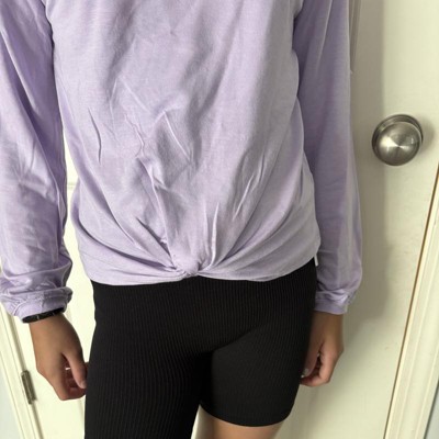 [This review was collected as part of a promotion.] This lavender shirt is a perfect chill back to school piece. It is very soft and cozy. She is wearing a size large and it fits true to size. The arm length is great and still gives her a bit of room to grow. The knot in the front is a perfect detail to give it a little something. My daughter loves this top and plans to wear it to school and to sports. There are tons of cute color options too! I received an incentive to write this review.