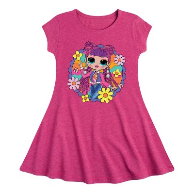 Girls' Monster High Deuce Gorgon Fit & Flair Cap Sleeve Graphic Dress - Heather Fuchsia - Medium