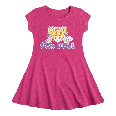 Girls' Monster High Pastel Character Group Fit & Flair Cap Sleeve Graphic Dress - Heather Fuchsia - Medium
