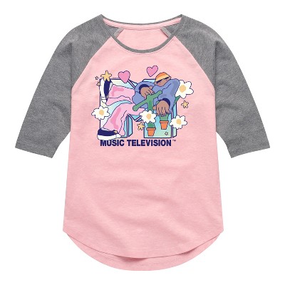 MTV - Logo Retro Collage - Toddler & Youth Girls Raglan Graphic T-Shirt - Celebrate the essence of MTV's MTV with officially licensed apparel featuring unique designs crafted exclusively by Hybrid Apparel. Each piece brings beloved characters, iconic imagery, and memorable moments to life, offering MTV fans a one-of-a-kind way to showcase their passion.