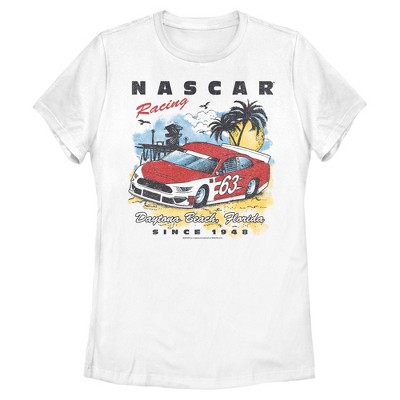 Start your engines and your outfit with these racing-ready NASCAR styles for the whole family! This new officially licensed Girls' Racing Car 63 Summer Beach Graphic T-Shirt features the cool No. 63 car parked by the sun-soaked shores of Daytona Beach, Florida. With a refreshing coastal scene and the bold "Racing Daytona Beach, Florida Since 1948" printed across the front. Don't just watch the race, feel the thrill of racing's iconic beachside roots wherever you go!