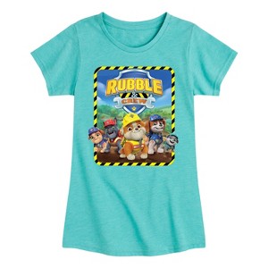 Girls' Paw Patrol Rubble & Crew Construction Group Fitted Short Sleeve Graphic T-Shirt - Turquoise - Small