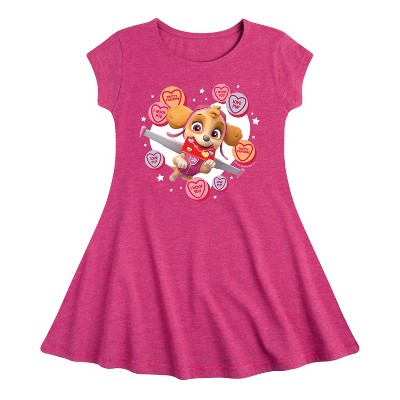 Girls' Paw Patrol Skye Lightning Fit & Flair Cap Sleeve Graphic Dress - Heather Fuchsia - Small
