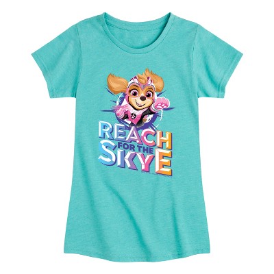 Girls' Paw Patrol Skye Lightning Fitted Short Sleeve Graphic T-Shirt - Turquoise - X-Large