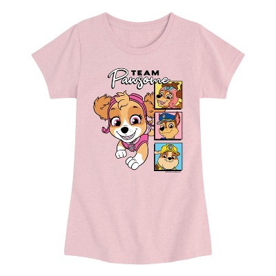 Paw Patrol - Team Pawsome - Youth Girls Boxy T-Shirt - Join the Paw Patrol with graphic apparel that showcases your favorite pups—Chase, Marshall, Skye, and Rubble—ready to save Adventure Bay with their heroic adventures!
