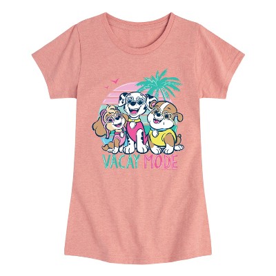 Paw Patrol - Vacay Mode - Youth Girl Short Sleeve Boxy Tee - Join the Paw Patrol with graphic apparel that showcases your favorite pups—Chase, Marshall, Skye, and Rubble—ready to save Adventure Bay with their heroic adventures!