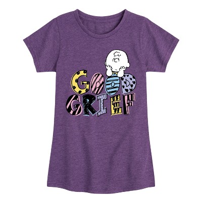 Girls' Peanuts Aaugh Pattern Charlie Brown Fitted Short Sleeve Graphic T-Shirt - Heather Purple - Medium