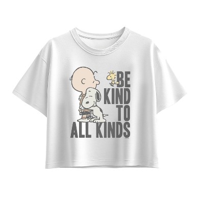 Girls' Peanuts Be Kind to All Kinds Fitted Short Sleeve Graphic T-Shirt - Birch - Small