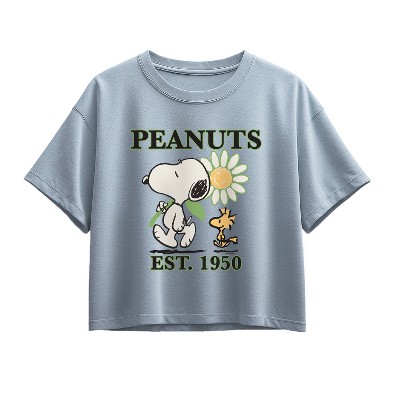 Girls' Peanuts Be Kind to All Kinds Short Sleeve Boxy Graphic T-Shirt - Chambray Blue - Small