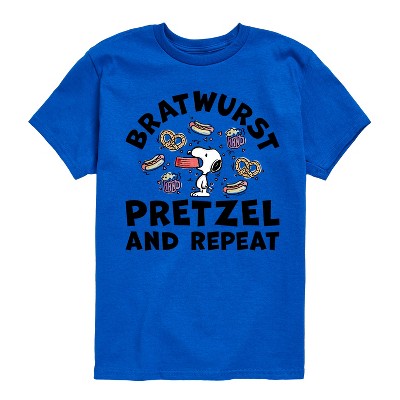 Peanuts - Bratwurst Pretzel And Repeat Snoopy - Toddler & Youth Girls Short Sleeve Graphic T-Shirt - From the best-loved comic strip in history comes officially licensed PEANUTS apparel for fans everywhere. Show your love for Charlie Brown, Snoopy, Woodstock, Lucy, Linus, Pigpen and the whole gang. Copyright Peanuts.