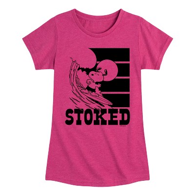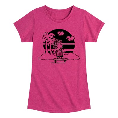 Girls' Peanuts Camp Chill Fitted Short Sleeve Graphic T-Shirt - Heather Fuchsia - Medium