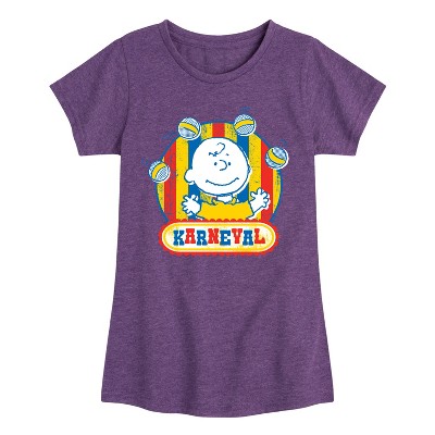 Girls' Peanuts Charlie Brown Records Fitted Short Sleeve Graphic T-Shirt - Heather Purple - Small