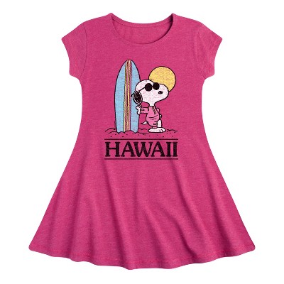 Girls' Peanuts Collegiate Art Fit & Flair Cap Sleeve Graphic Dress - Heather Fuchsia - Small