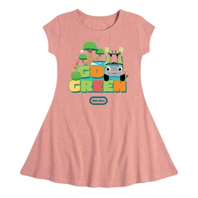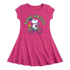 Peanuts - Ride Green - Toddler And Youth Girls Fit And Flare Dress - From the best-loved comic strip in history comes officially licensed PEANUTS apparel for fans everywhere. Show your love for Charlie Brown, Snoopy, Woodstock, Lucy, Linus, Pigpen and the whole gang. Copyright Peanuts.
