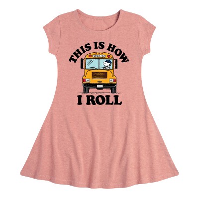 Peanuts - School Is Cool - Toddler And Youth Girls Fit And Flare Dress - From the best-loved comic strip in history comes officially licensed PEANUTS apparel for fans everywhere. Show your love for Charlie Brown, Snoopy, Woodstock, Lucy, Linus, Pigpen and the whole gang. Copyright Peanuts.