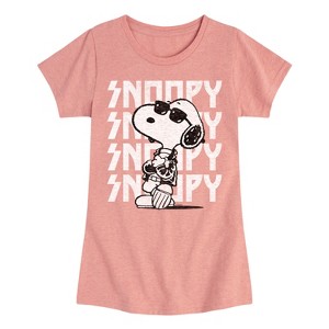 Girls' - Peanuts - Snoopy Rock Name Repeat Fitted Short Sleeve Graphic T-Shirt - 1 of 4