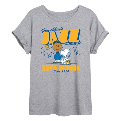 Peanuts - Franklins Jazz Lounge - Youth Girls Fitted Short Sleeve T-Shirt - From the best-loved comic strip in history comes officially licensed PEANUTS apparel for fans everywhere. Show your love for Charlie Brown, Snoopy, Woodstock, Lucy, Linus, Pigpen and the whole gang. Copyright Peanuts.