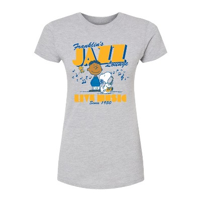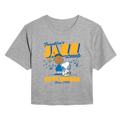 Girls' Peanuts Franklins Jazz Lounge Fitted Short Sleeve Graphic T-Shirt - Heather Grey - X-Large