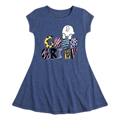 Peanuts - Good Grief Comic - Girls Fit And Flare Cap Sleeve Dress - From the best-loved comic strip in history comes officially licensed PEANUTS apparel for fans everywhere. Show your love for Charlie Brown, Snoopy, Woodstock, Lucy, Linus, Pigpen and the whole gang. Copyright Peanuts.