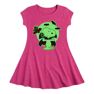 Girls' Peanuts Just A Kid Who Loves Fall Fit & Flair Cap Sleeve Graphic Dress - Heather Fuchsia - Small