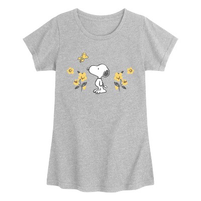 Girls' Peanuts Look To Snoopy Fitted Short Sleeve Graphic T-Shirt - Heather Grey - Large