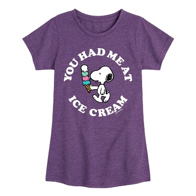 Girls' Peanuts Lucky Can Be Fitted Short Sleeve Graphic T-Shirt - Heather Purple - Small