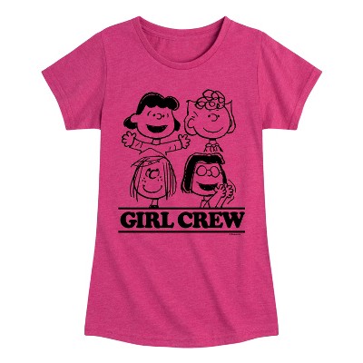 Girls' Peanuts Rerun And Friends Fitted Short Sleeve Graphic T-Shirt - Heather Fuchsia - Medium