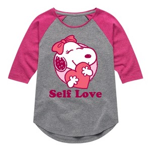 Girls' - Peanuts - Self Love Belle Shirt Tail Raglan Graphic T-shirt