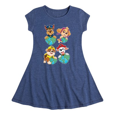 Girls' Peanuts Snoopy Alaska Last Frontier Fit & Flair Cap Sleeve Graphic Dress - Heather Navy - Medium