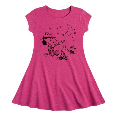 Peanuts - Snoopy Camping - Toddler And Youth Girls Fit And Flare Dress - From the best-loved comic strip in history comes officially licensed PEANUTS apparel for fans everywhere. Show your love for Charlie Brown, Snoopy, Woodstock, Lucy, Linus, Pigpen and the whole gang. Copyright Peanuts.