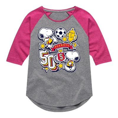 Girls' - Peanuts - Snoopy Camping Shirt Tail Raglan Graphic T-shirt