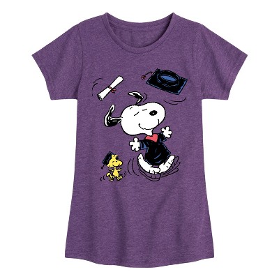 Girls' Peanuts Snoopy Flipping Fitted Short Sleeve Graphic T-Shirt - Heather Purple - Medium