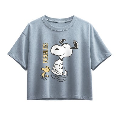 Girls' Peanuts Snoopy Flower Short Sleeve Boxy Graphic T-Shirt - Chambray Blue - X-Large
