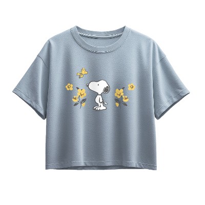 Girls' Peanuts Snoopy Flower Short Sleeve Boxy Graphic T-Shirt - Chambray Blue - Small