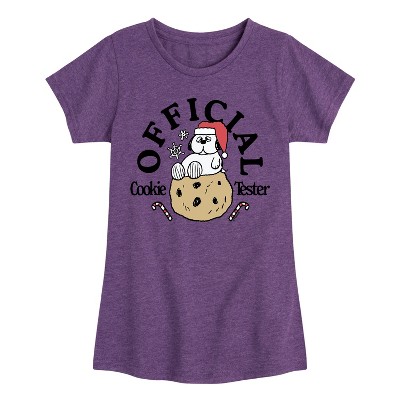 Girls' Peanuts Snoopy Heart Fitted Short Sleeve Graphic T-Shirt - Heather Purple - X-Large