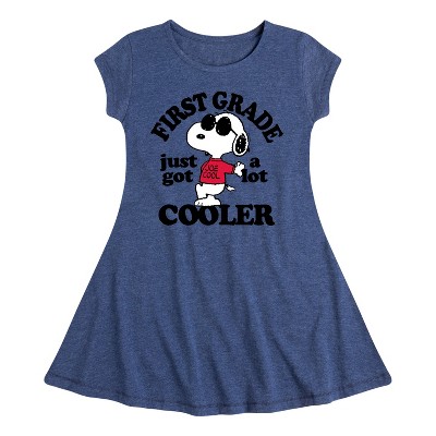 Girls' Peanuts Snoopy Stars Fit & Flair Cap Sleeve Graphic Dress - Heather Navy - Small