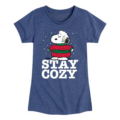 Girls' Peanuts Sweetheart Fitted Short Sleeve Graphic T-Shirt - Heather Navy - Small