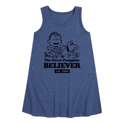 Peanuts - The Great Pumpkin Believer - Toddler And Youth Girls Fit And Flare Dress - From the best-loved comic strip in history comes officially licensed PEANUTS apparel for fans everywhere. Show your love for Charlie Brown, Snoopy, Woodstock, Lucy, Linus, Pigpen and the whole gang. Copyright Peanuts.