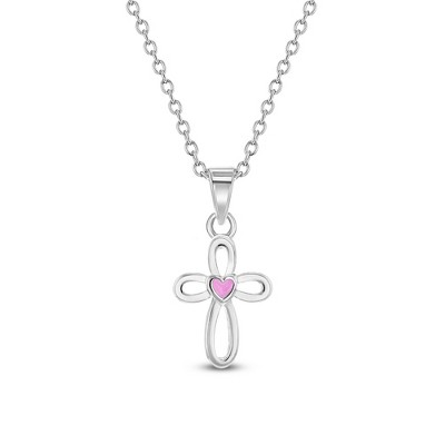 Product Name: Girls' Pink Heart Satellite Sterling Silver Necklace - In Season Jewelry