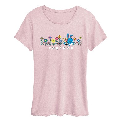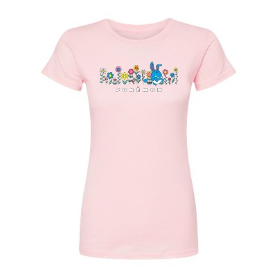 Girls' Pokémon Azumarill Flowers Fitted Short Sleeve Graphic T-Shirt - Heather Pink - X-Large