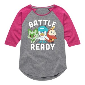 Pokémon - Battle Ready - Youth Girls Raglan Graphic T-Shirt - Celebrate the essence of Pokemon's Pokémon with officially licensed apparel featuring unique designs crafted exclusively by Hybrid Apparel. Each piece brings beloved characters, iconic imagery, and memorable moments to life, offering Pokémon fans a one-of-a-kind way to showcase their passion.